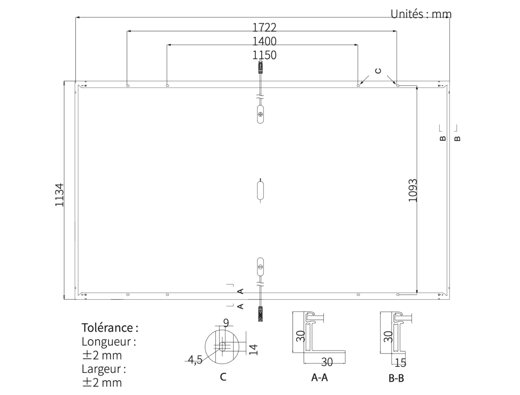 - Boîtier de jonction : IP68, avec 3 diodes de dérivation